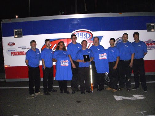 Had a great trip west. Todd, Eddie, & myself made a stop at Illinois Tool Works, Inc. (ITW), parent company of team sponsors Permatex & Wynn's on our way to Joliet & had the opportunity to introduce Follow A Dream to many of the folks there including the CEO David Speer-we even had him in the car for awhile! The people there were all very interested in what we do & enjoyed getting to check out the car. Then it was off to the Jeg's Allstar race & the Route 66 NHRA Nationals @ Route 66 Raceway. We had a good weekend with the Allstars, where we went to the finals. We were somewhat disappointed in our showing @ the national event, where we unfortunately went out in the first round. Team worked their butts off again & then we all headed home for a short time before heading to New England Dragway today. We'll test tomorrow & then participate in the division 1 Lucas Oil Drag Racing Series Friday & Saturday. Boy is it gonna be HOT, HOT, HOT!!